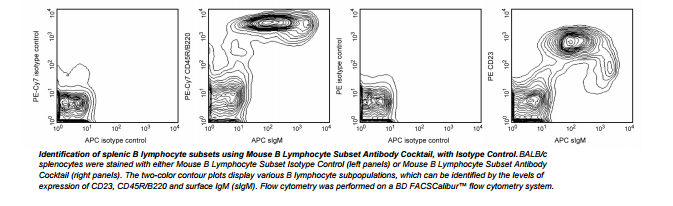 The monoclonal antibody was purified from tissue culture supernatant or ascites by affinity chromatography. The antibody was conjugated with PE-Cy7 under optimum conditions, and unconjugated antibody and free PE-Cy7 were removed. The antibody was conjugated with R-PE under optimum conditions, and unconjugated antibody and free PE were removed. The antibody was conjugated to APC under optimum conditions, and unconjugated antibody and free APC were removed. Store undiluted at 4°C and protected from prolonged exposure to light. Do not freeze.