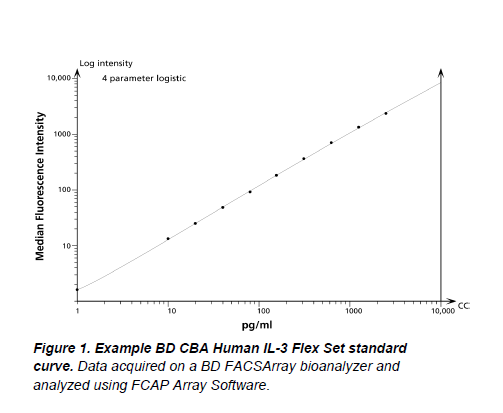 The BD™ CBA Human IL-3 Flex Set is a bead-based immunoassay capable of measuring human interleukin-3 (IL-3) in serum, plasma, and cell