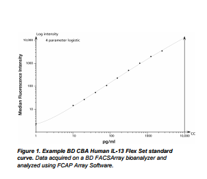 The BD™ CBA Human IL-13 Flex Set is a bead-based immunoassay capable of measuring human interleukin-13 (IL-13) in serum, plasma, and cell culture supernatant samples. Human reactivity was determined by testing samples with the BD CBA Human IL-13 Flex Set. The biology and function of IL-13 has been extensively reviewed in the literature. For more information on bead-based immunoassays, refer to the product insert for the BD CBA Human Soluble Protein Master Buffer Kit (Cat. No. 558264 or 558265).