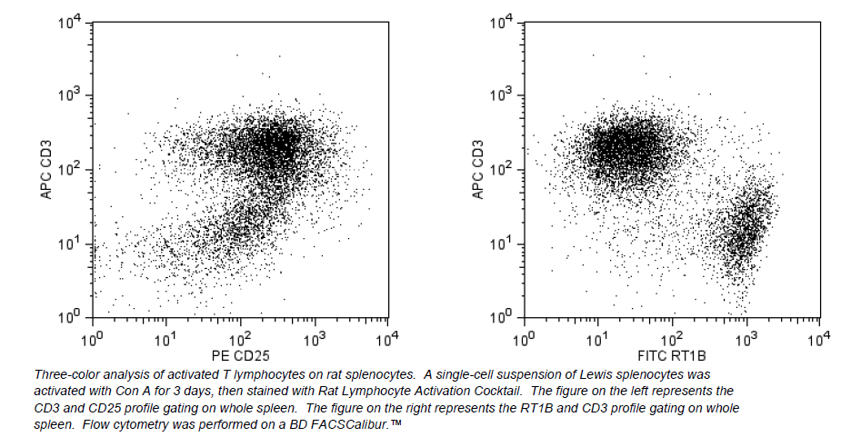 The Rat Lymphocyte Activation Cocktail is a three-color reagent cocktail designed to identify rat activated lymphocytes by direct