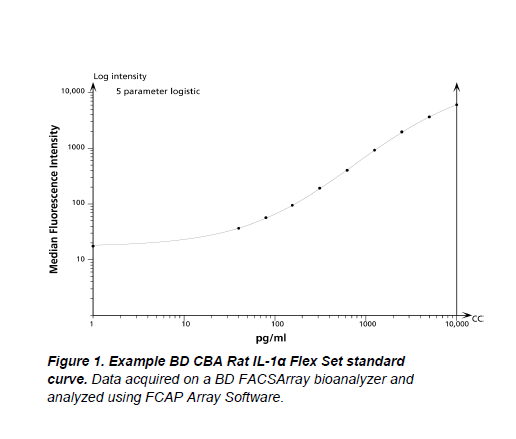 The BD™ CBA Rat IL-1α Flex Set is a bead-based immunoassay capable of measuring rat interleukin-1α (IL-1α) in serum and cell culture