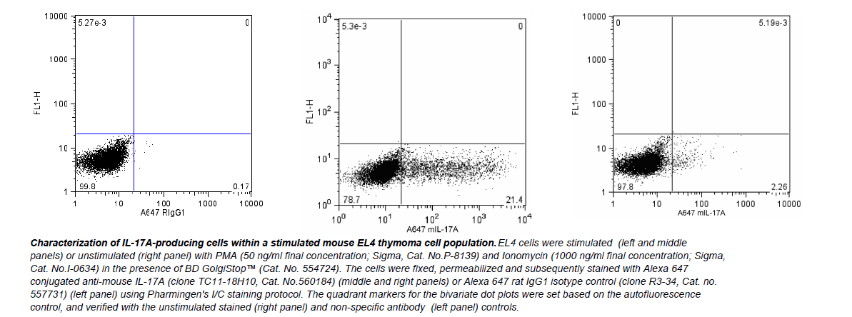 The TC11-18H10 antibody reacts with recombinant and natural mouse IL-17A proteins. IL-17A, also known as CTLA-8, is a T cell-derived