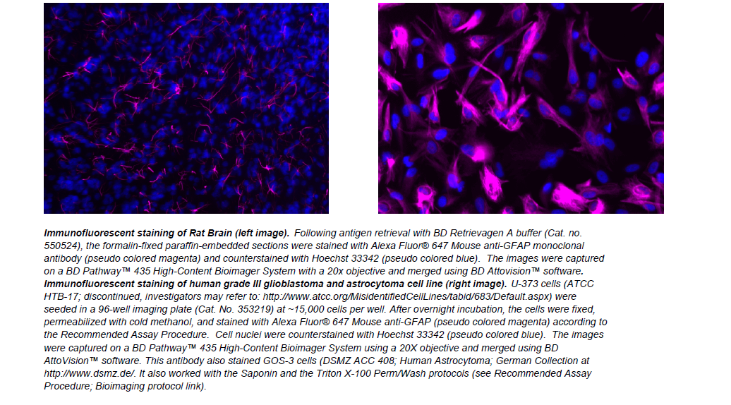 GFAP (Glial Fibrillary Acidic Protein) is the major protein of glial filaments in differentiated astrocytes. BD Biosciences offers a panel of