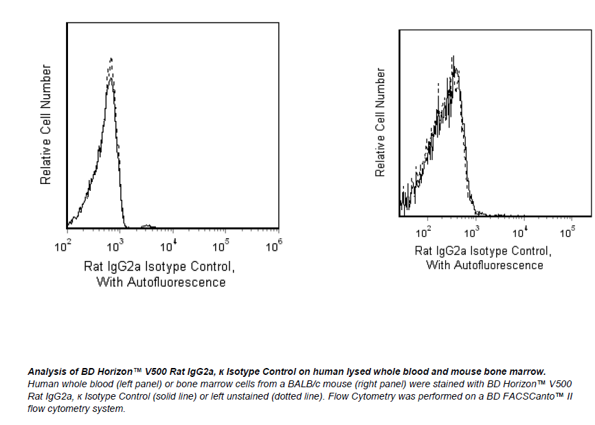 The antibody is conjugated to BD Horizon™ V500, which has been developed for use in multicolor flow cytometry experiments and is
