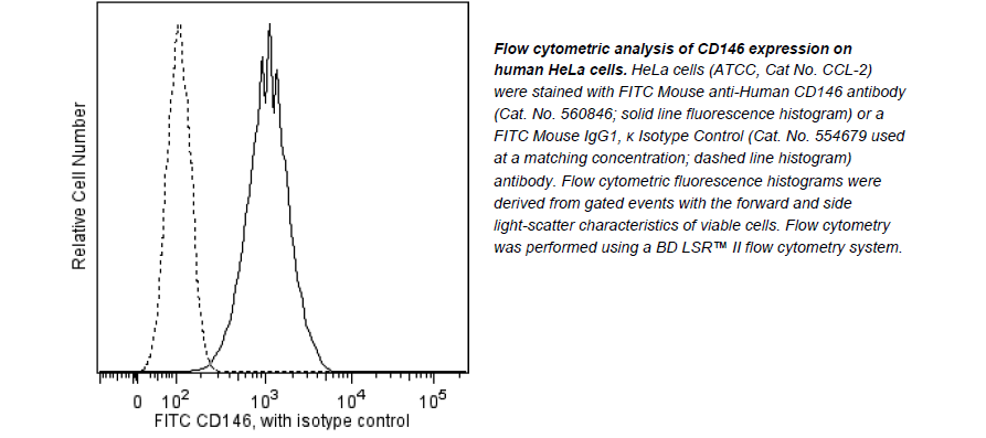 The P1H12 antibody reacts with a 118 kDa transmembrane glycoprotein also known as MCAM, MUC18, or Mel-CAM. CD146 is a member