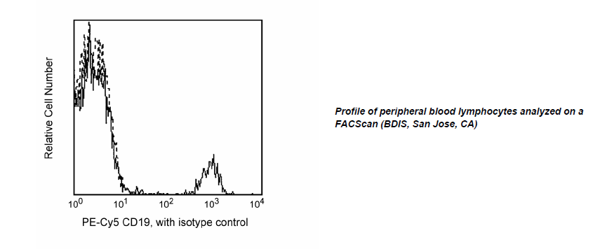 The HIB19 monoclonal antibody specificially binds to the 95 kDa type I transmembrane CD19 glycoprotein. CD19 is expressed during all