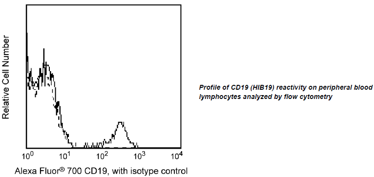 2.Alexa Fluor® 700 has an adsorption maximum of ~700nm and a peak fluorescence emission of ~720nm. Before staining cells with this reagent, please confirm that your flow cytometer is capable of exciting the fluorochrome and discriminating the resulting fluorescence.