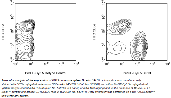 4.The antibody was conjugated with PerCP-Cy5.5 under optimum conditions, and unconjugated antibody and free PerCP-Cy5.5 were removed. Storage of PerCP-Cy5.5 conjugates in unoptimized diluent is not recommended and may result in loss of signal intensity.