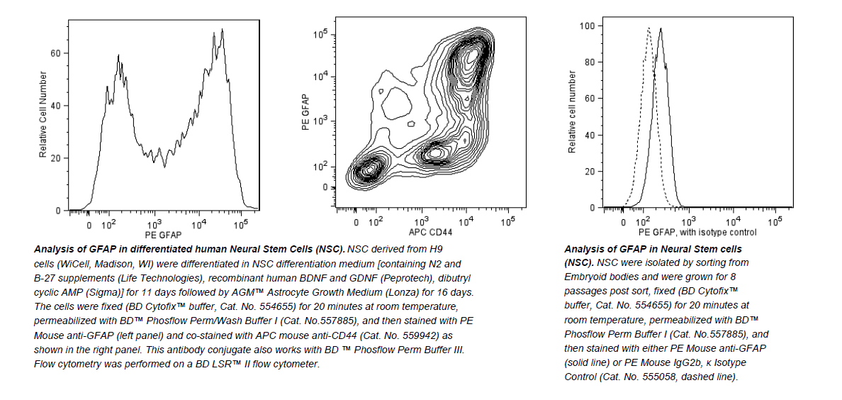 GFAP (Glial Fibrillary Acidic Protein) is the major protein of glial filaments in differentiated astrocytes. BD Biosciences offers a panel of