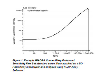 instructions in the BD CBA Human Enhanced Sensitivity Master Buffer kit, the top standard point for this assay is 200,000 fg/mL. Discard