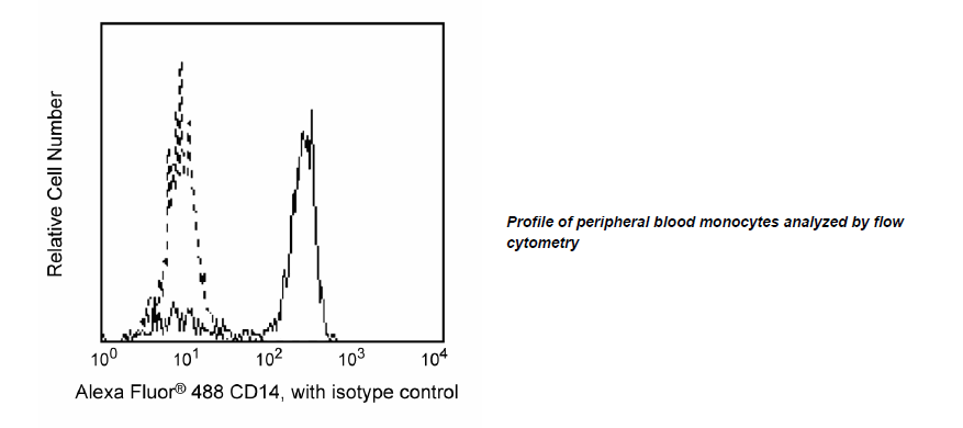 The M5E2 monoclonal antibody specifically binds to CD14, a 53-55 kDa glycosylphosphatidylinositol (GPI)-anchored single chain