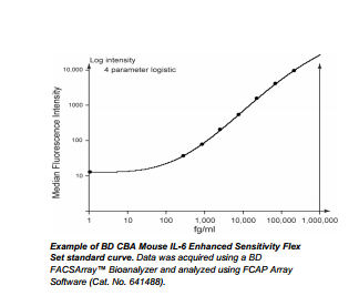 instructions in the BD CBA Mouse Enhanced Sensitivity Master Buffer kit, the top standard point for this assay is 200,000 fg/ml. Discard