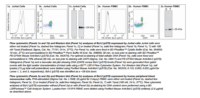 phosphorylation sites including Thr56, Ser70, Thr74 and Ser87. Phosphorylation of Bcl-2 Ser70 has been shown to be a mitotic marker.