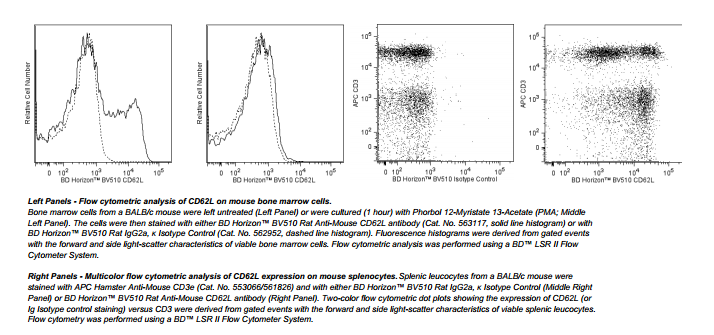 The antibody was conjugated to BD Horizon™ BV510 which is part of the BD Horizon™ Brilliant Violet™ family of dyes. With an Ex Max