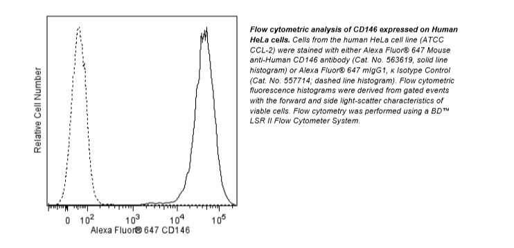 The P1H12 monoclonal antibody specifically binds to CD146. CD146 is a 118 kDa transmembrane glycoprotein also known as MCAM,