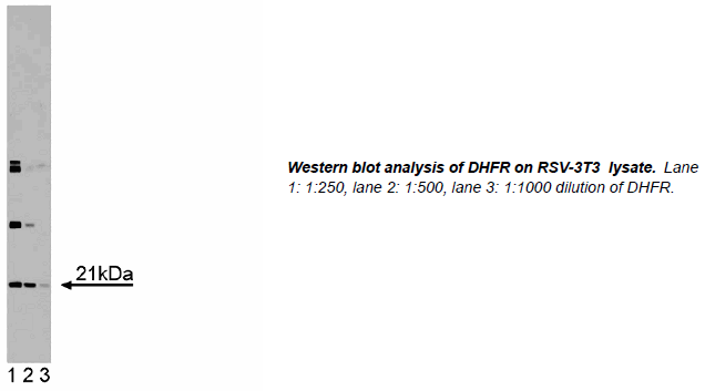 a protein of 186 amino acids that is highly conserved among different organisms. DHFR levels change during the cell cycle, with the highest