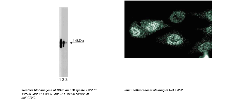 transmembrane domain. On B cells, signaling through CD40 induces cell growth and differentiation, mediates cell survival within the