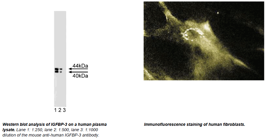 in body fluids as multiple 40-50 kDa forms as a result of differential glycosylation. The expression of IGFBP-3 in many tissues suggests that