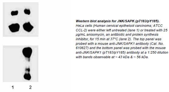 Complete activation of JNK/SAPK requires the phosphorylation of both Thr183 and Tyr185, which are located in a Thr-X-Tyr motif. The