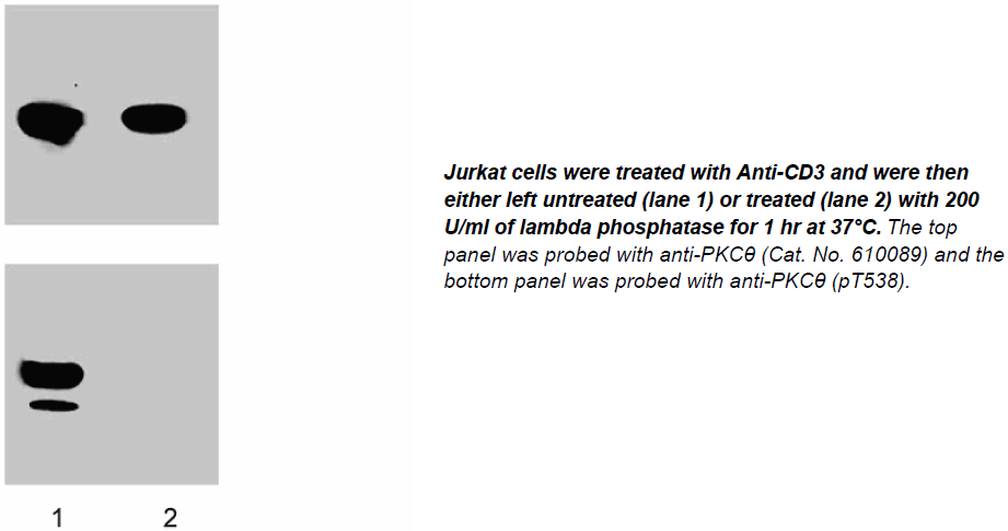 The 9/PKC monoclonal antibody recognizes the phosphorylated threonine 538 (pT538) of human PKCθ.