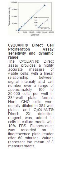 • 0.5 mL CyQUANT® Direct nucleic acid stain (component A)