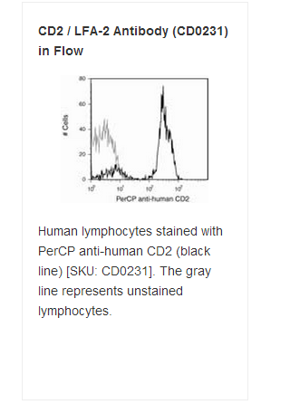 CD2 belongs to T lymphocyte glycoproteins of immunoglobulin superfamily. Its interaction with CD58 stabilizes adhesion between T cells and antigen presenting or target cells. Relatively low affinity of CD2 to CD58 (as measured in solution) is compensated within the two-dimensional cell-cell interface to provide tight adhesion. Moreover, T cell activation induces increased CD2 expression and its lateral mobility, making easier contact between CD2 and CD58. Subsequently, T cell activation causes fixation of CD58-CD2 at sites of cell-cell contact, thereby strengthening intercellular adhesion. CD2 deficiency reduces intestinal inflammation and helps to control infection.