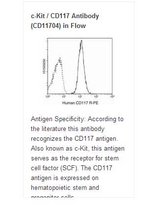 c-Kit, also known as CD117 and stem cell factor receptor, is a 145 kDa transmembrane tyrosine kinase encoded by the c-Kit proto-oncogene. c-Kit acts to regulate a variety of biological responses including cell proliferation, apoptosis, chemotaxis and adhesion. Ligand binding to the extracellular domain leads to autophosphorylation on several tyrosine residues within the cytoplasmic domain, and activation. c-Kit mutations correlate with tumor growth and progression in a variety of cancers including mast cell disease, gastrointestinal stromal tumor, acute myeloid leukemia, Ewing sarcoma, and lung cancer. Phosphorylation at tyrosine 703 of c-Kit allows binding of Grb2 and activation of the Ras-Raf-ERK1&2 signaling pathway.