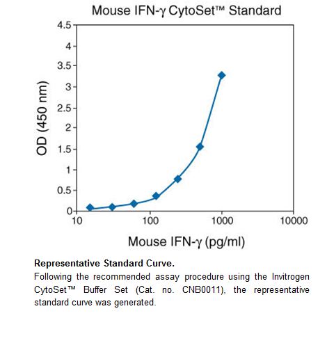 This Antibody Pair Kit comes with matched antibody pairs to detect and quantify protein levels of mouse IFN-γ. Also available is Buffer Kit for Antibody Pairs that saves time with premade, easy-to-use buffers and solutions optimized for use with Invitrogen Antibody Pairs. The Assay Buffer can be used as a blocking reagent for ELISA plates as well as a diluent for ELISA standards and samples, detection antibody, and HRP conjugate. Buffer reagents needed to complete the reaction are sold separately under Catalog No. CNB0011.