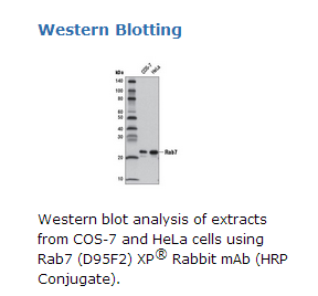 Rab7 (D95F2) XP®Rabbit mAb (HRP Conjugate) detects endogenous levels of total Rab7 protein.