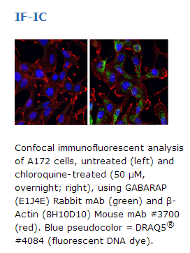 GABARAP (E1J4E) Rabbit mAb recognizes endogenous levels of total GABARAP protein. This antibody does not cross-react with other GABARAP family members.