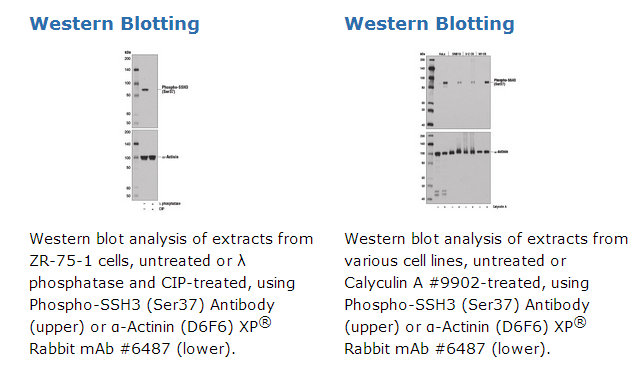 Polyclonal antibodies are produced by immunizing animals with a synthetic phosphopeptide corresponding to residues surrounding Ser37 of human SSH3 protein. Antibodies are purified by protein A and peptide affinity chromatography.