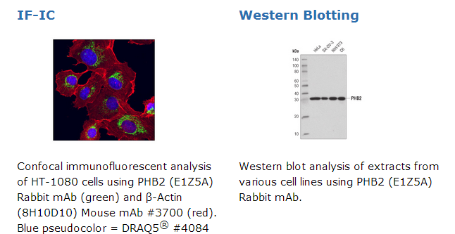 PHB2 (E1Z5A) Rabbit mAb recognizes endogenous levels of total PHB2 protein.