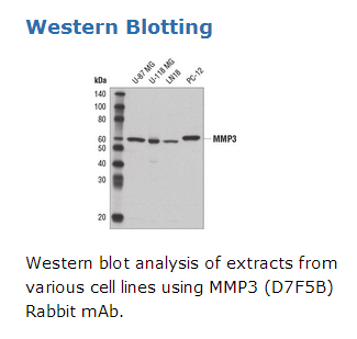 MMP3 (D7F5B) Rabbit mAb recognizes endogenous levels of total MMP3 protein.