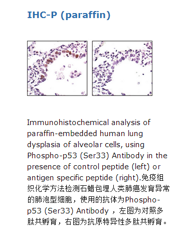 Phospho-p53 (Ser33) Antibody detects endogenous levels of p53 only when phosphorylated at serine 33.