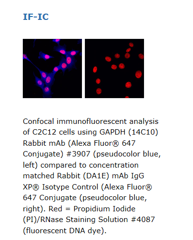 Rabbit (DA1E) mAb IgG XP™同型对照不能直接用于其它已知抗原的检测,它的功能是作为兔单克隆抗体的同型对照。本抗体在最佳条件下采用Alexa Fluor ® 647荧光染料标记,已经过内部测试,可以直接用于人类细胞的流式细胞分析。同型对照是用来评估针对由于Fc受体结合或者其它蛋白与蛋白之间的相互作用引起的一抗的非特异性结合。一个同型对照抗体应该与被测抗体具有相同的免疫球蛋白类型和相同的浓度。