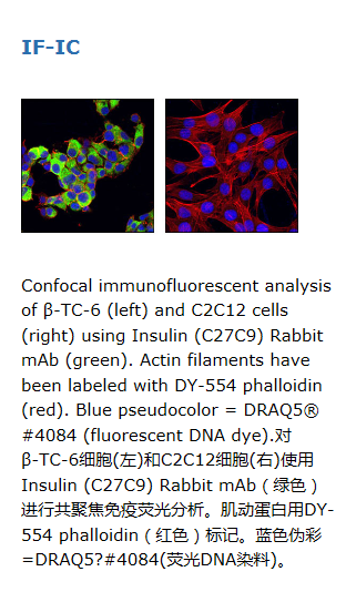 Insulin (C27C9) Rabbit mAb detects endogenous levels of total insulin protein.