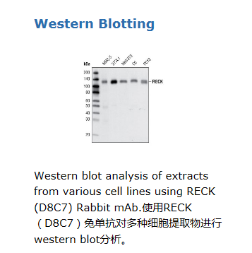 RECK (D8C7) Rabbit mAb detects endogenous levels of total RECK protein.
