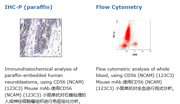 CD56 (NCAM) (123C3) Mouse mAb detects endogenous levels of total CD56 protein.