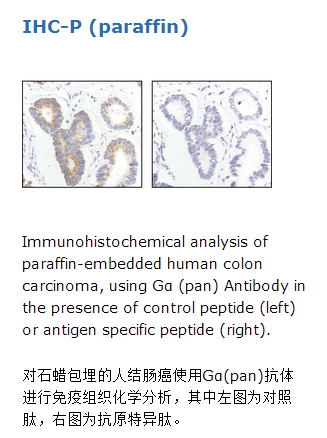 Gα (pan) Antibody detects total levels of endogenous G protein alpha subunits. The antibody may not detect G(12)-α, G(13)-α (13), G(s)-α (s) and G(olf)-α.