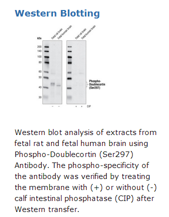 Phospho-Doublecortin (Ser297) Antibody detects endogenous levels of doublecortin only when phosphorylated at Ser297.