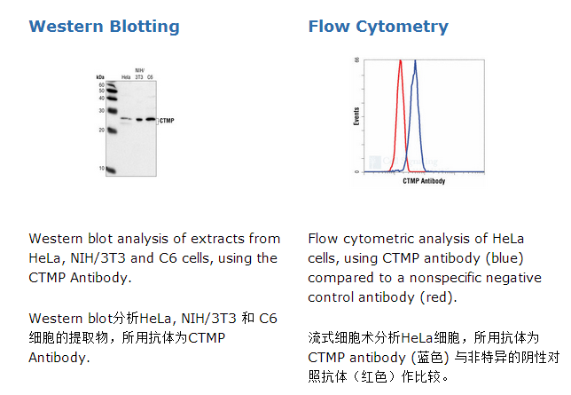 Polyclonal antibodies are produced by immunizing animals with a synthetic peptide corresponding to residues of human CTMP. Antibodies are purified by protein A and peptide affinity chromatography.