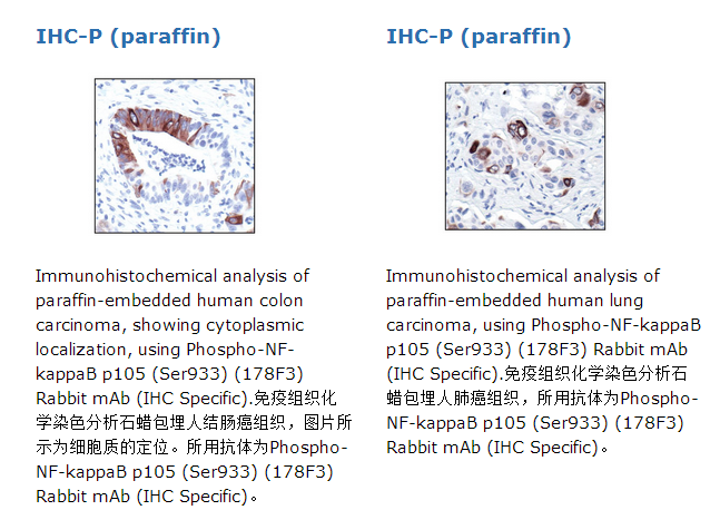 Phospho-NF-kappaB p105 (Ser933) (178F3) Rabbit mAb detects endogenous levels of p105NF-kappaB only when phosphorylated at serine 933.