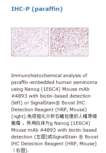 SignalStain® Boost IHC Detection Reagent (HRP, Mouse) is a ready-to-use solution intended for use in immunohistochemical assays to detect mouse primary antibodies. SignalStain® Boost IHC Detection Reagent (HRP, Mouse) is a highly sensitive, one-step, polymer-based detection reagent that is specific for mouse IgG. It can be used to visualize targets in both paraffin-embedded and frozen tissue sections and it is compatible with all peroxidase-based substrates.