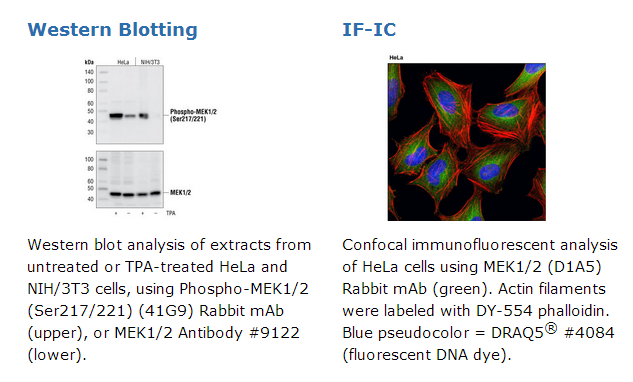 MEK1/2 (D1A5) Rabbit mAb 【子货号:#8727,包装:100 µl,,运保温度:–20°C】