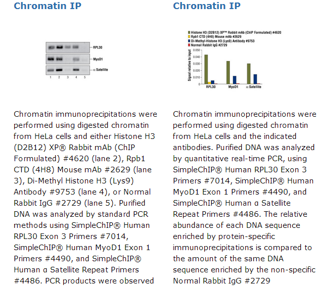 Vortex tube briefly to resuspend the beads. Add 30 μl of bead slurry to each chromatin immunoprecipitation (ChIP) reaction. For bead washing and subsequent elution of immunocomplexes, the beads can be separated from solution by a brief 1 minute centrifugation in a microcentrifuge at 6,000 rpm. Resuspend the beads in solution by gently vortexing or rocking the tube.