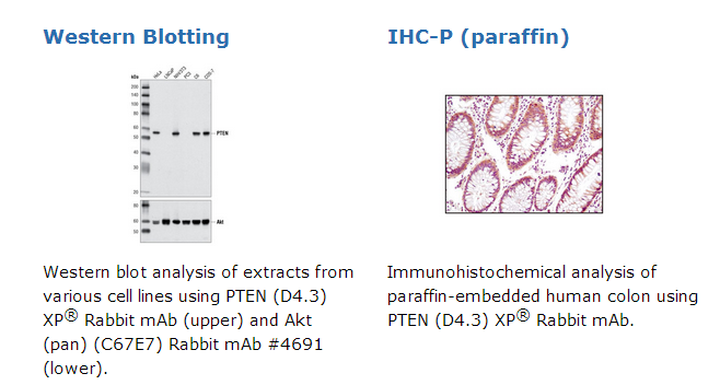 PTEN (D4.3) XP® Rabbit mAb 【子货号:#9188,包装:40 µl,,运保温度:–20°C】