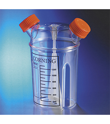 The Corning 1L spinner flask body is constructed of polystyrene, paddle and shaft from polypropylene and caps from high density polyethylene. All are made of USP Class VI and ISO 10993-18 compliant materials.