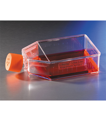 • 75cm² available growth area • Manufactured from optically clear virgin polystyrene • Ultra Low Attachment surface features a covalently bound hydrogel layer that effectively inhibits cellular attachment and minimizes protein absorption, enzyme activation, and cellular activation • Surface is non-cytotoxic, biologically inert, and nondegradable • Lot numbers for ease in traceability • 100% integrity tested • Sterilized by gamma irradiation and certified nonpyrogenic