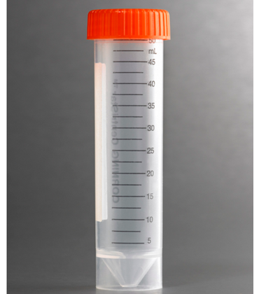 • Corning® 50 mL centrifuge tubes feature black printed graduations and a large white marking spot.