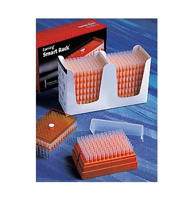 The Corning® Smart Rack™ system makes refilling pipet tip racks easier than ever. The tips are contained on a plastic reload card, and transferred to a rack with a disposable reloading device (included). Please check our Technical Information Listing on our Pipet Tip Compatibility Guide for additional pipet tip fit information.---The Smart Rack™ is compatible with many popular brand 200µL 96-tip racks, and the cards are autoclavable.-Each reload card contains 94 tips and two corner anchoring pins that secure the card to the rack. (the 94 tip configuration,)-Smart Rack tips are nonsterile, autoclavable, DNase-/RNase-free, nonpyrogenic, and DNA-free.